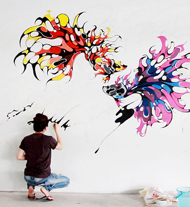Wall Design and Painting, Fine Art Wall Design and Painting Line Drawing, Water color